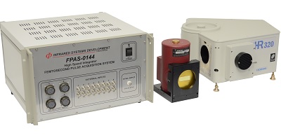 The FPAS spectrograph provides a turn-key, drop-in solution for femto-second Pump-Probe 2D Vibrational Spectroscopy. All required components are provided, including a host computer and LabView based LASPEC software. Simply focus the laser energy into the entrance slit and start acquiring data. Infrared Systems Development Corporation has teamed with the J.Y. Horiba Company to integrate a high resolution spectrometer with detector and acquisition electronics to provide an easy to use system for complete spectral acquisition. Interchangeable grating turrets allow complete coverage of the mid and long wave infrared bands. All components of the spectrometer and data acquisition system are controlled by the supplied LASPEC software. The open architecture and supplied source code provide the user with unlimited ability to integrate all computer controlled assets with one application. The FPAS Spectrometer is the most compact imaging spectrometer available. Offering interchangeable triple grating turrets, automated dual exit port selection and motorized slit and grating positioning. Array and detector exit ports are selected by a motorized flip mirror. Many users have collected data with their single element detectors and need a method to correlate the previous data with new data acquired with the Array. Our Femto-Second Laser Pulse Acquisition System is the heart of the data acquisition system, providing simultaneous sampling of all array elements and external user-provided inputs. The FPAS integrates and captures detector signals from short pulse, high-energy laser systems with excellent linearity and 16-Bit resolution from single pulses or up to 1x10E6 pulses in sequence, with no lost data. Coupled with a high performance Infrared Associates Linear MCT Array, the system provides unmatched spectral performance. Dual row detector arrays can be used to provide isolated reference and sample paths through the spectrometer to compensate for variations in amplitude and energy distribution typically associates with ultra-short pulse lasers. A complete offering of gratings and detectors can meet any application for high-speed pulse acquisition spectrometry. Our customer support team has experience with many techniques and is ready to assist with hardware and software support and modifications to suit your need.